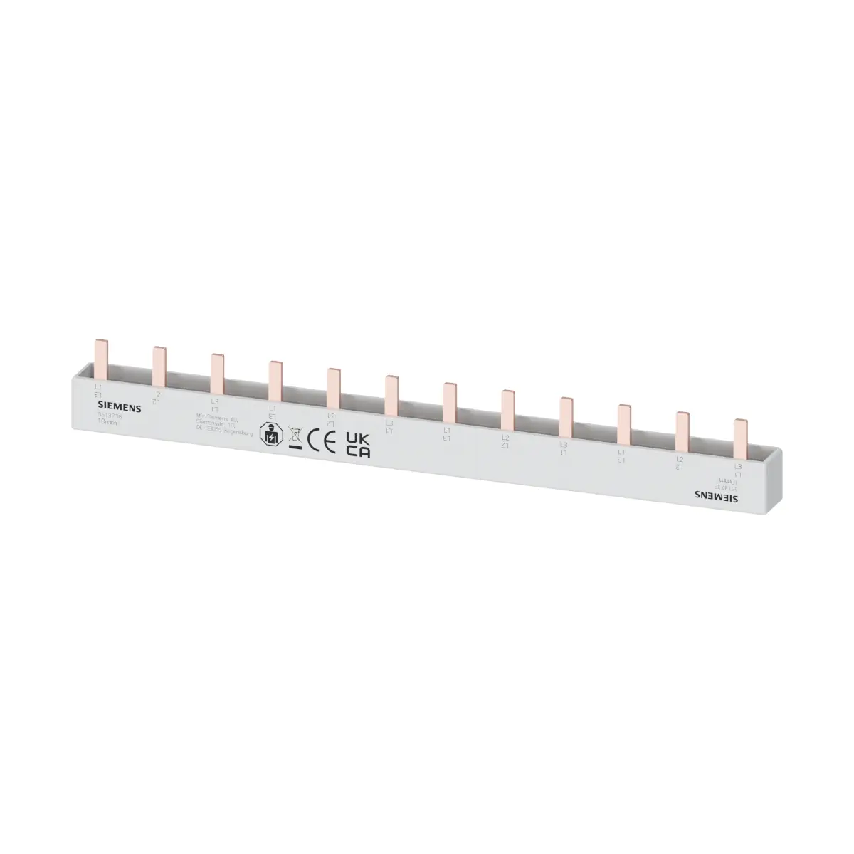 5ST3738 Szyna zbiorcza kołkowa 3-fazowa, 10 mm2, długość 214 mm z możliwością cięcia, z nasadkami krańcowymi, zabezpieczona przed dotknięciem