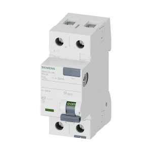 Siemens 5SV4316-0KL z serii SENTRON to bezzwłoczny, dwubiegunowy wyłącznik różnicowoprądowy (RCCB) typu AC do instalacji 230 V / 50 Hz. Prąd znamionowy 63 A oraz czułość 30 mA zapewniają skuteczną ochronę przeciwporażeniową w obwodach jednofazowych. Wersja z N po lewej stronie ułatwia dopasowanie w rozdzielnicach, a obudowa 2 moduły (36 mm), montaż na szynie DIN i IP20 w zabudowie wspierają wygodną instalację. Może współpracować z zabezpieczeniem wstępnym do 80 A.