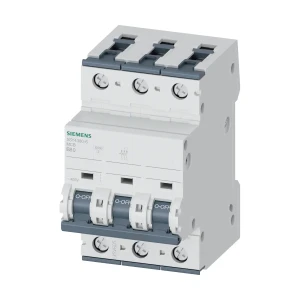 Siemens SENTRON 5SY4380-6 to 3-biegunowy wyłącznik nadmiarowo-prądowy o charakterystyce B i prądzie 80 A, przeznaczony do trójfazowych instalacji 400 V AC. Oferuje zdolność łączeniową 10 kA wg EN 60898 i IEC 60947-2, może pracować także w obwodach DC do 60 V oraz spełnia wymagania wyłącznika głównego wg EN 60204-1. Montaż na szynie DIN, zaciski u góry i u dołu oraz ochrona IP20 zwiększają bezpieczeństwo. Kompaktowe 54 mm (3 moduły) i głębokość montażowa 70 mm ułatwiają zabudowę w rozdzielnicach.