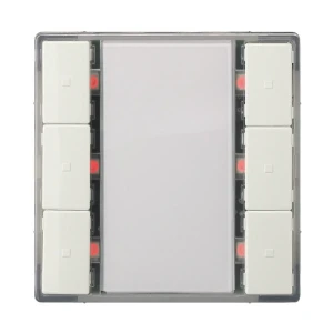 UP 223/14 przeznaczony jest do sterowania funkcjami automatyki w pomieszczeniu za pomocą magistrali KNX, np. oświetleniem, roletami/żaluzjami czy wywoływaniem scen. Dzięki trzem parom klawiszy umożliwia wygodne przypisanie wielu funkcji w jednym miejscu, a obecność czujnika temperatury wspiera zastosowania związane z komfortem cieplnym w strefie.