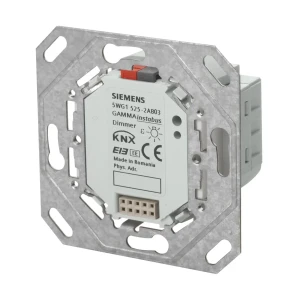Siemens GAMMA instabus UP 525/03 (5WG1 525-2AB03) to podtynkowy, uniwersalny ściemniacz KNX z 1 wyjściem ściemniającym dla 230 V. Przeznaczony do puszki Ø60 mm (gł. 60 mm), łączy się z magistralą przez zacisk KNX i jest zasilany z napięcia magistrali. Dzięki interfejsowi BTI współpracuje z jednostkami aplikacyjnymi, np. DELTA bus. Obsługuje obciążenia R/C/L do 250 VA i posiada zabezpieczenia przeciążeniowe, zwarciowe oraz termiczne. Uruchomienie ułatwia przycisk programowania z czerwoną diodą LED.