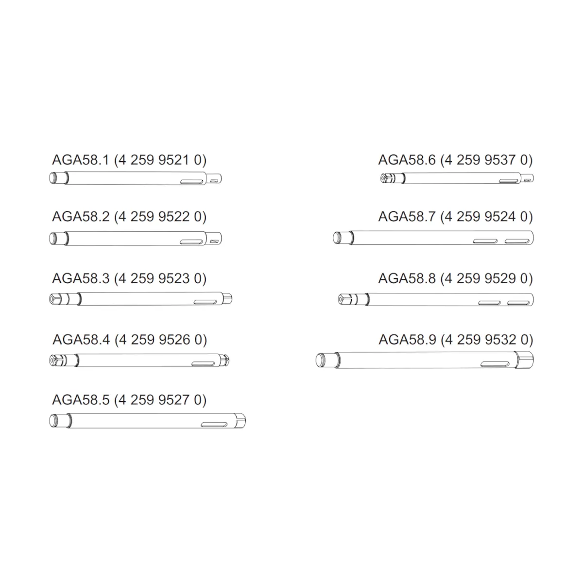AGA58.4 to wałek napędowy (drive shaft) firmy Siemens, przeznaczony jako akcesorium do siłowników serii SQM5... stosowanych do napędu przepustnic powietrza i gazu w palnikach olejowych oraz gazowych (średniej i większej mocy). Wałek ma profil kwadratowy 9,5 mm i jest wykonany w wersji dwustronnej, co ułatwia dopasowanie połączenia mechanicznego do wymagań konkretnej aplikacji.