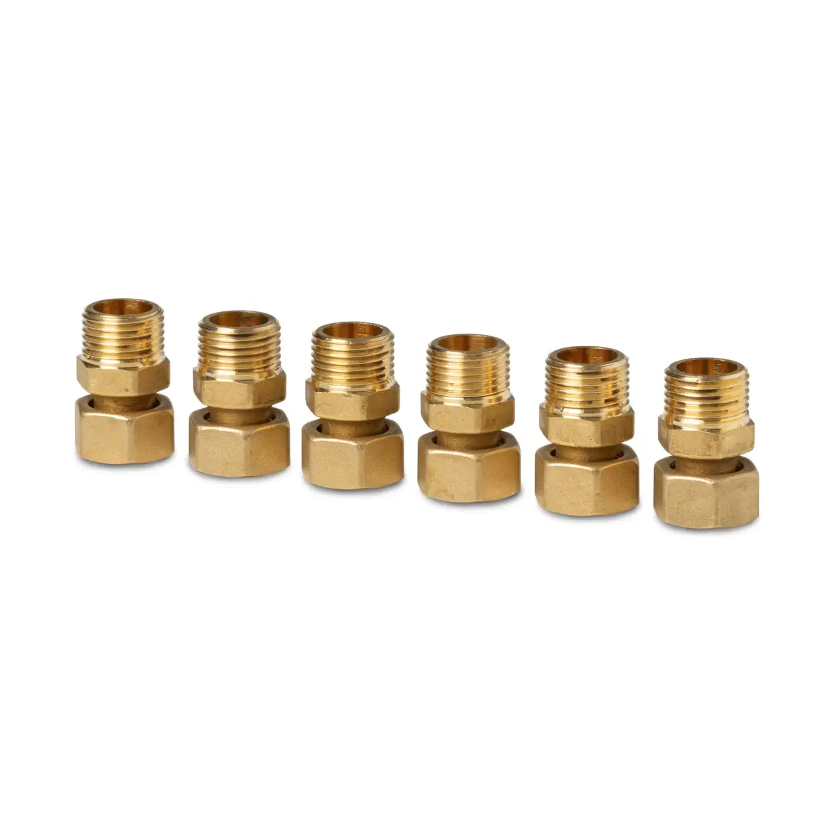 ALN13.156B Komplet śrubunków gwintowanych (6 szt.), przyłącze zaworu G1/2, przyłącze instalacji G1/2B, DN15, mosiądz