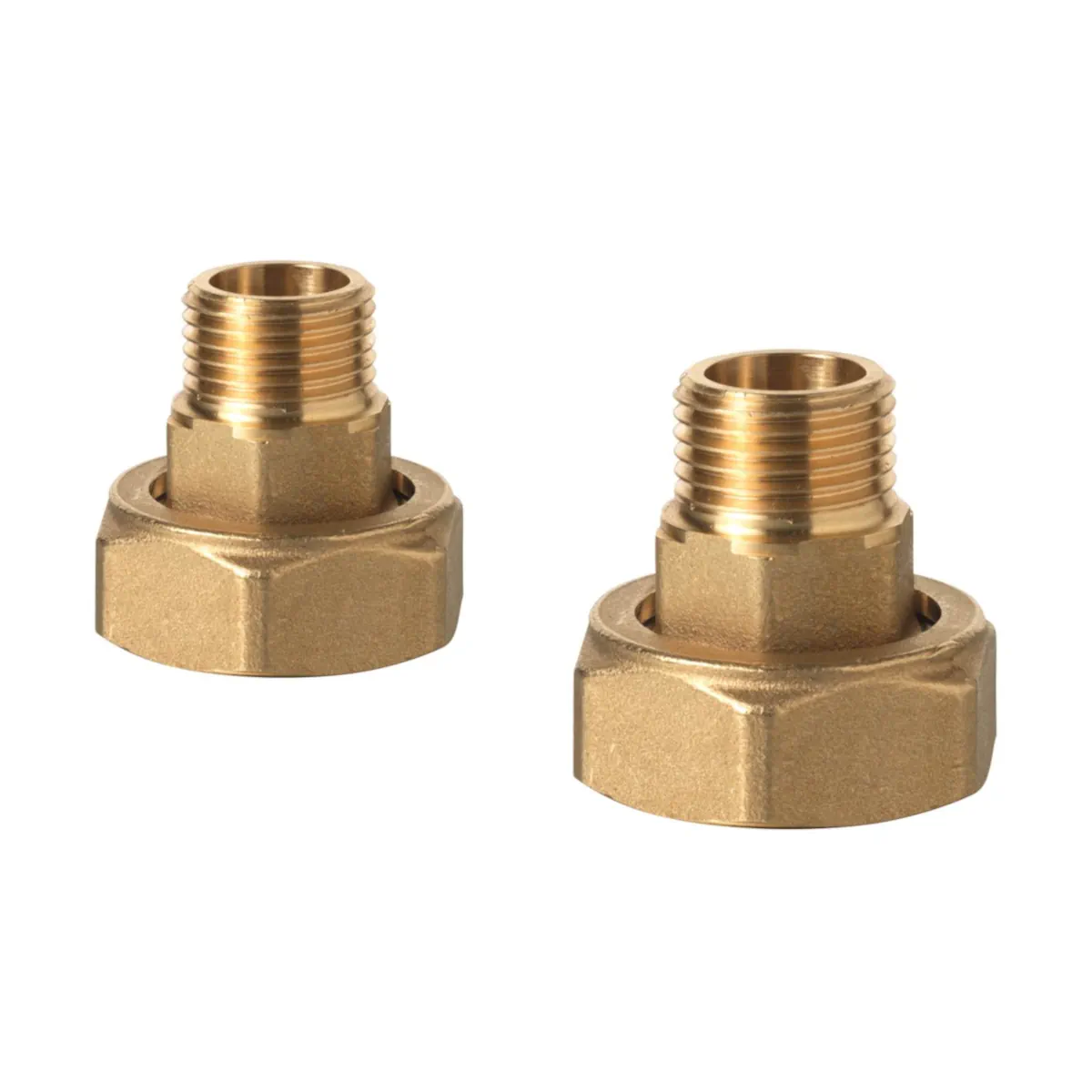 ALN14.152B Zestaw śrubunków gwintowanych (2 szt.), przyłącze zaworu G¾, przyłącze instalacji R½, DN15, mosiądz