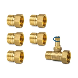 ALN14.205B-ALP56 Zestaw śrubunków gwintowanych (5 szt.), przyłącze zaworu G3/4, przyłącze instalacji R3/4, mosiądz, z króćcem pomiaru ciśnienia (1szt.)