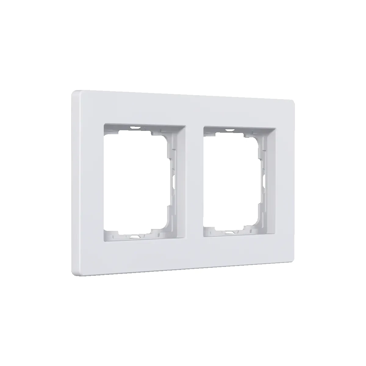 Enertex® AluRa Double WHITE przeznaczona jest do estetycznego wykończenia i zabudowy dwóch wkładów 55 mm w instalacjach opartych o osprzęt Jung Serie A oraz Jung AS.