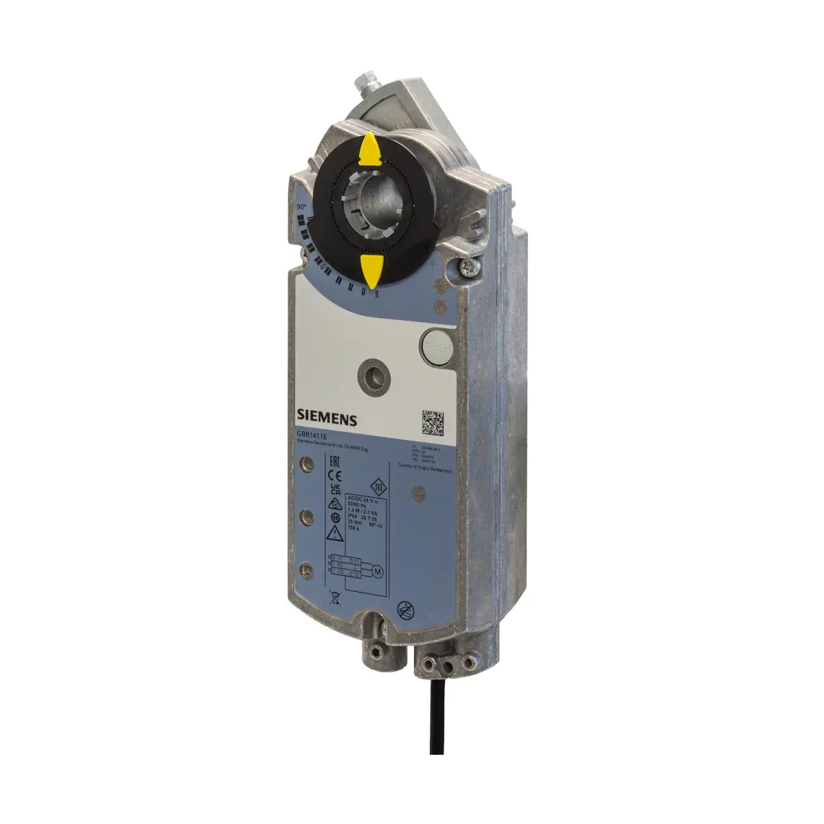 Siemens GBB341.1E to elektroniczny siłownik obrotowy do przepustnic powietrza z serii OpenAir™, przeznaczony do pracy w instalacjach HVAC. Wyposażony jest w moment obrotowy 25 Nm, zasilanie AC 100…240 V oraz sterowanie 2-pozycyjne lub 3-pozycyjne. Idealny do przepustnic o powierzchni do ok. 5 m².