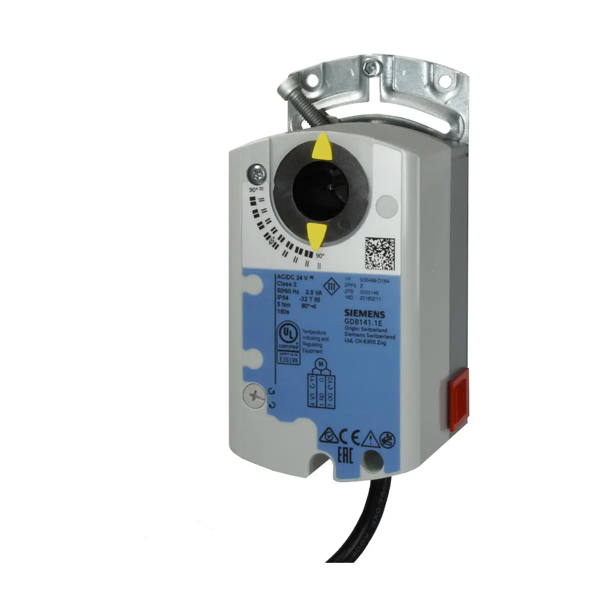 Siemens GDB161.1E to solidny siłownik do przepustnic powietrza o momencie 5 Nm, zasilany 24 V AC / 24…48 V DC i sterowany sygnałem 0/2…10 V DC. Dzięki mechanicznie nastawianemu zakresowi 0…90°, funkcji samoadaptacji, wskaźnikowi położenia oraz sygnałowi zwrotnemu U = 0/2…10 V DC sprawdzi się w precyzyjnej regulacji przepustnic w systemach HVAC.