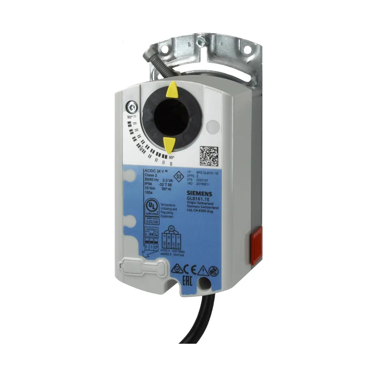 GLB164.1E to obrotowy siłownik do przepustnic powietrza z rodziny Siemens OpenAir™, przeznaczony do pracy w instalacjach wentylacji i klimatyzacji (HVAC). Zapewnia moment 10 Nm i realizuje sterowanie ciągłe z wejściem Y = 0…35 V DC (ograniczone wewnętrznie do 10 V DC), oferując jednocześnie samoadaptację zakresu obrotu, dwa przełączniki pomocnicze, potencjometr sprzężenia zwrotnego 5 kΩ oraz elektryczny sygnał położenia U = 0…10 V DC. Siłownik dostarczany jest z fabrycznie zamontowanym kablem 0,9 m, a kąt pracy można ustawić mechanicznie w zakresie 0…90°.
