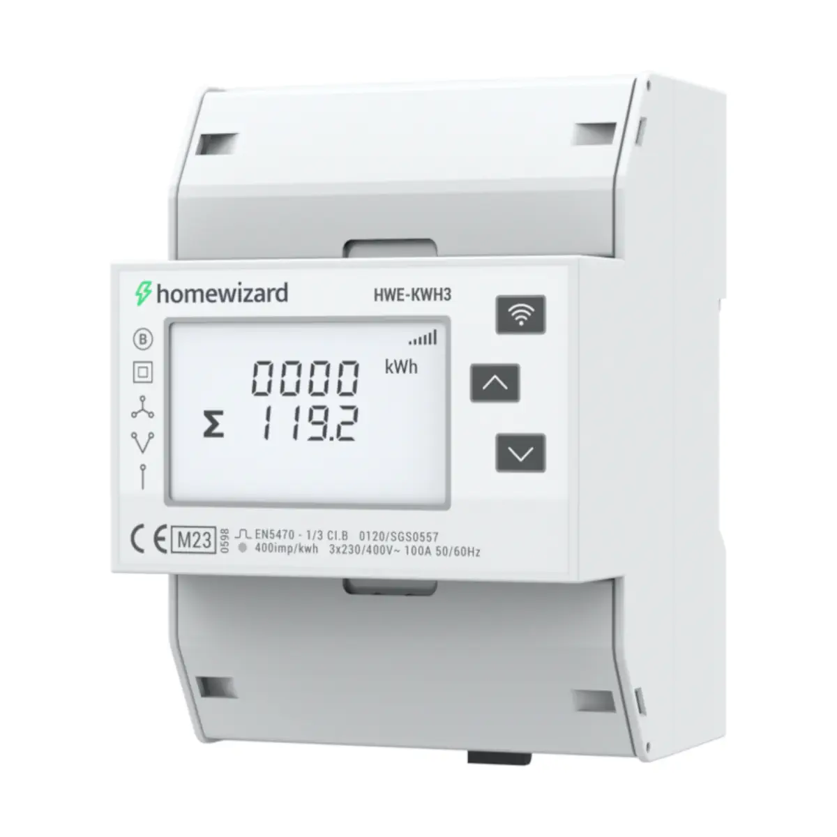 HWE-KWH3 to 3‑fazowy licznik energii (kWh) z Wi‑Fi marki HomeWizard, opracowany we współpracy z Eastron – zaprojektowany do nowoczesnych rozdzielnic i zdalnego monitorowania instalacji. Licznik pokazuje dwukierunkową moc w czasie rzeczywistym (import i eksport) oraz zapewnia wgląd w zużycie/produkcję energii m.in. dla fotowoltaiki, pompy ciepła i ładowania samochodu elektrycznego. Dzięki certyfikacji MID może być używany do rozliczeń (np. kosztów ładowania auta w leasingu).