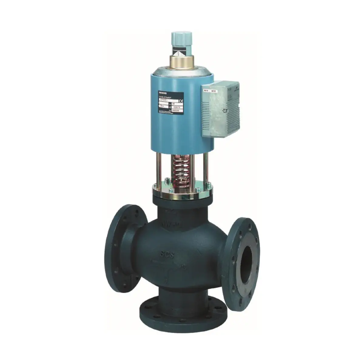 Siemens M3P80FY to zaawansowany, trójdrogowy zawór regulacyjny DN 80, PN16 z magnetycznym siłownikiem 24 V AC, przeznaczony do instalacji wody chłodniczej, niskotemperaturowej wody grzewczej oraz wody z dodatkiem środków przeciwzamarzaniowych. Krótki czas przebiegu (< 2 s), wysoka rozdzielczość skoku, zintegrowany regulator położenia z sygnałem zwrotnym 0…10 V, funkcja sprężyny powrotnej (1 → 3 zamknięte bez zasilania) oraz możliwość sterowania ręcznego zapewniają precyzyjną i bezpieczną regulację ciągłą w wymagających obiegach HVAC. Solidna, bezobsługowa konstrukcja i wysoki współczynnik przepływu kVS = 80 m³/h czynią M3P80FY doskonałym wyborem do średnich i dużych instalacji grzewczych i chłodniczych.