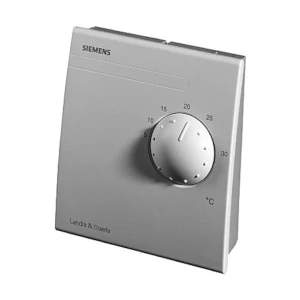 Siemens QAA26 to ścienny czujnik temperatury pomieszczeniowej z wbudowanym zadajnikiem wartości zadanej, przeznaczony do instalacji HVAC. Pomiar realizuje element LG‑Ni 1000, a nastawa odbywa się płynnie w zakresie 5–30 °C (z mechanicznymi ogranicznikami min./max.). Wyjścia na zaciskach B/M/R, obudowa IP30, montaż na ścianie lub puszce. Pracuje w zakresie 0–50 °C, wilgotność do 95% r.h. (bez kondensacji). Stała czasowa ok. 7 min, klasa bezpieczeństwa III.