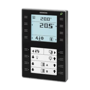 Siemens QMX3.P37-1BSC to estetyczny, czarny naścienny zadajnik pomieszczeniowy do systemów KNX, z pomiarą temperatury, podświetlanym LCD, konfigurowalnymi przyciskami dotykowymi, polem na etykiety oraz wskaźnikiem LED „Zielony Listek”. Zasilanie z magistrali KNX/PL-Link oraz stopień ochrony IP30 czynią go praktycznym rozwiązaniem do nowoczesnych instalacji automatyki pomieszczeniowej.