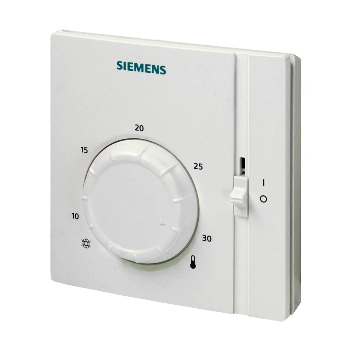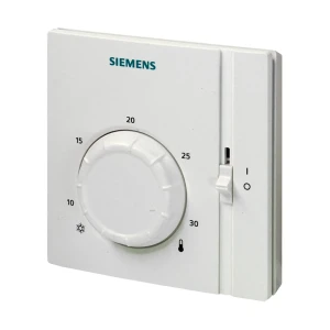 Siemens RAA31 to prosty i niezawodny termostat pomieszczeniowy ON/OFF do systemów ogrzewania lub chłodzenia, z ręcznym przełącznikiem ZAŁ/WYŁ, oddzielnymi wyjściami dla ogrzewania i chłodzenia oraz szerokim zakresem napięcia przełączania 24…250 V AC. Dzięki zakresowi nastaw 8…30 °C i małej histerezie SD ≤ 1 K dobrze sprawdza się w typowych zastosowaniach mieszkaniowych i w budynkach przemysłu lekkiego.