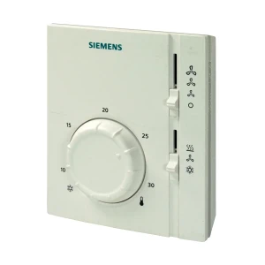 Siemens RAB31.1 to kompaktowy, mechaniczny termostat pomieszczeniowy do 4-rurowych klimakonwektorów wentylatorowych, oferujący 2-stawną regulację temperatury, sterowanie 3-biegowym wentylatorem oraz ręcznie wybierane tryby ogrzewania, chłodzenia i wentylacji. Przełączanie napięcia 24…250 V AC, wyjścia dla zaworów ogrzewania i chłodzenia oraz czytelne elementy nastawcze sprawiają, że RAB31.1 jest prostym w instalacji i eksploatacji rozwiązaniem do typowych zastosowań HVAC w budynkach mieszkalnych, użyteczności publicznej i przemysłu lekkiego.