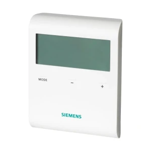 Siemens RDD100 (S55770-T275) to pomieszczeniowy regulator temperatury do instalacji grzewczych, realizujący regulację 2-stawną (włącz/wyłącz) z wyjściem do sterowania ogrzewaniem. Regulator mierzy temperaturę w pomieszczeniu za pomocą wbudowanego czujnika i utrzymuje wartość zadaną, przełączając wyjście z histerezą 1 K. Obsługa odbywa się przyciskami dotykowymi, a na czytelnym wyświetlaczu można prezentować temperaturę lub wartość zadaną w °C lub °F.