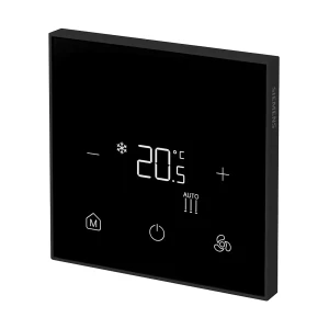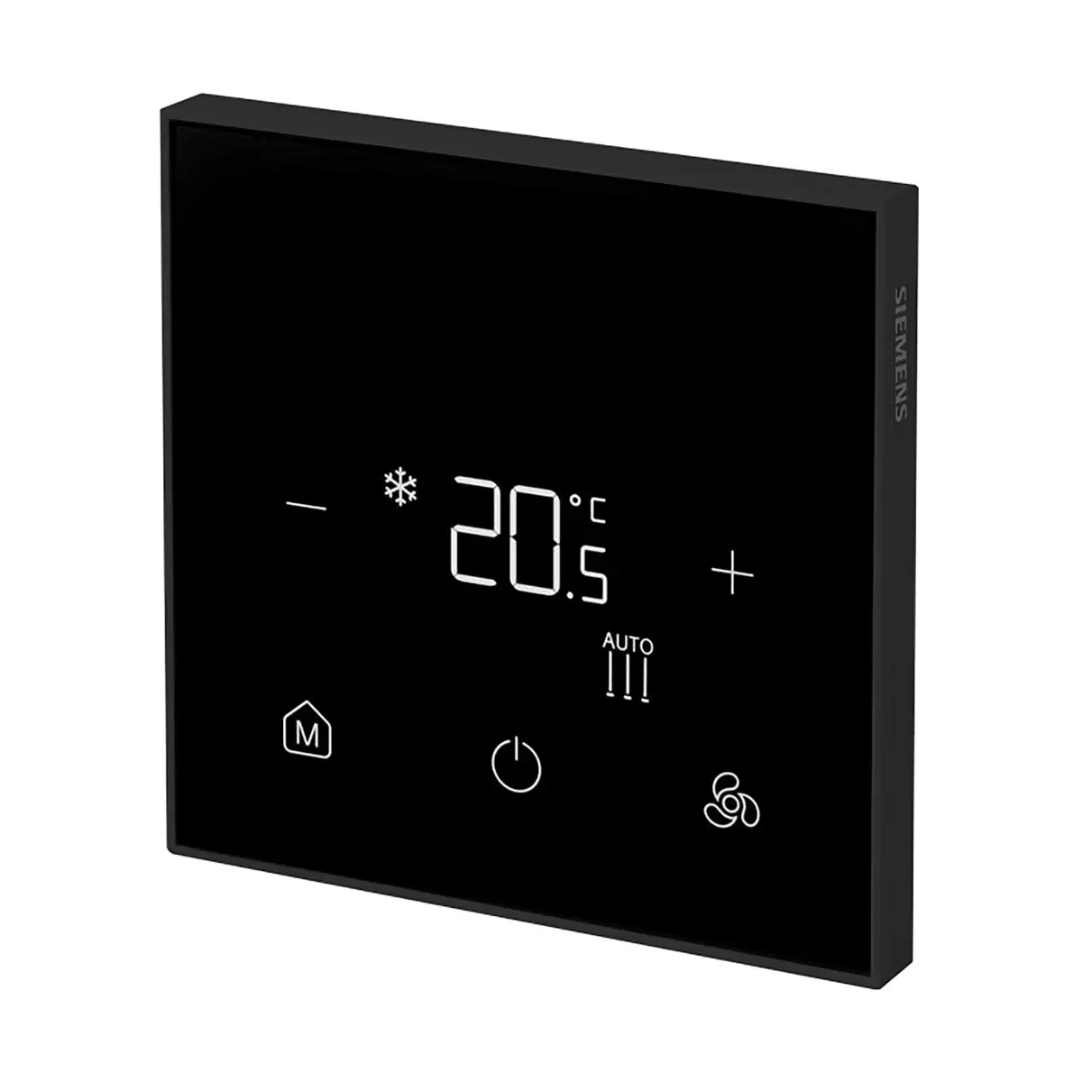 Siemens RDF440BN-BK to nowoczesny, czarny termostat pomieszczeniowy BACnet/Modbus przeznaczony do sterowania klimakonwektorami 2- i 4-rurowymi z siłownikami zaworów i wentylatorami DC 0…10 V lub 1-/3-biegowymi. Łączy szerokie możliwości komunikacji, wygodną konfigurację (HMI, BACnet/Modbus, NFC QuickConfig), elastyczną obsługę trybów Comfort/Economy/Protection oraz funkcje oszczędzania energii. Estetyczna, smukła obudowa z podświetlanym, bezramkowym wyświetlaczem w kolorze czarnym umożliwia elegancką integrację z nowoczesnymi wnętrzami biurowymi, hotelowymi i komercyjnymi.