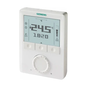 RDG100T to elektroniczny pomieszczeniowy regulator temperatury firmy Siemens, z podświetlanym wyświetlaczem LCD i tygodniowym programem czasowym, przeznaczony do sterowania klimakonwektorami oraz sufitami chłodzącymi/grzewczymi, grzejnikami i ogrzewaniem podłogowym w instalacjach HVAC. Regulator zasilany jest z sieci 230 V AC, posiada 4 wyjścia triakowe 230 V AC (On/Off, PWM lub 3‑stawne) do sterowania zaworami i nagrzewnicą elektryczną oraz wyjścia do wentylatora 1‑ lub 3‑biegowego. Dodatkowo wyposażony jest w zdalne sterowanie z pilota podczerwieni i podtrzymanie zegara przy zaniku zasilania.