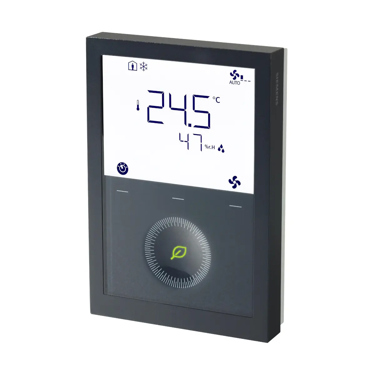 Siemens RDG200KN/BK (S55770-T452) to nowoczesny regulator pomieszczeniowy z komunikacją KNX (S-Mode, LTE-Mode), przeznaczony do sterowania klimakonwektorami, zastosowań uniwersalnych oraz sprężarek w układach DX. Wersja /BK ma czarną obudowę i wbudowane czujniki temperatury oraz wilgotności, a tryby Komfort/Ekonomiczny/Ochrona ułatwiają utrzymanie komfortu i oszczędności. Urządzenie obsługuje wentylator 3-biegowy lub DC 0…10 V, zasilanie AC 24 V lub 230 V i spełnia IP30.