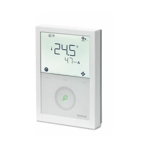 Siemens RDG264KN to regulator pomieszczeniowy KNX (S‑Mode, LTE‑Mode) do sterowania klimakonwektorami, zastosowań uniwersalnych oraz sprężarek DX. Ma wbudowane czujniki temperatury, wilgotności i CO₂, dzięki czemu pomaga utrzymać komfort i kontrolować jakość powietrza. Zasilany 24 V AC/DC, oferuje wyjścia DC 0–10 V (SELV) oraz sterowanie wentylatorem 3‑biegowym lub 0–10 V, a także tryby Komfort/Ekonomiczny/Ochrona i funkcję „zielony listek”.