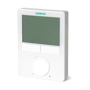 Siemens RDG405KN to pomieszczeniowy regulator temperatury z komunikacją KNX, przeznaczony do instalacji ogrzewania i chłodzenia w systemach VAV oraz do regulacji temperatury i jakości powietrza (IAQ) w pomieszczeniu. Urządzenie posiada podświetlany wyświetlacz LCD, regulację PI / P oraz elastyczne wejścia i wyjścia, umożliwiające sterowanie przepustnicą/VAV box (0…10 V DC lub 3-stawnie) i elementami grzania/chłodzenia (ON/OFF, PWM, 3-stawnie lub 0…10 V DC – zależnie od wybranej aplikacji i parametrów).