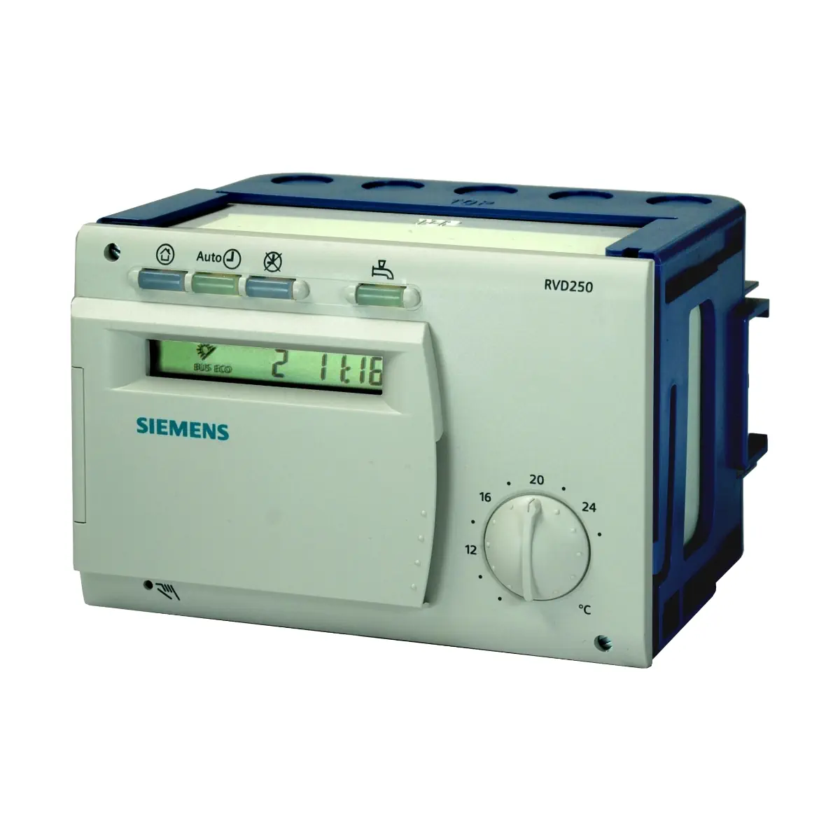 RVD250-A to wielofunkcyjny regulator ciepłowniczy firmy Siemens, przeznaczony do instalacji i węzłów ciepłowniczych dla jednego obiegu grzewczego oraz przygotowania c.w.u. w układach przepływowych lub zasobnikowych. Urządzenie posiada 28 zaprogramowanych typów instalacji oraz umożliwia komunikację poprzez magistralę LPB i M-bus. Zasilanie: AC 230 V.
