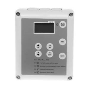 - Sposób regulacji: pogodowa regulacja temperatury zasilania z wpływem pomieszczenia lub bez, lub regulacja temperatury w pomieszczeniu