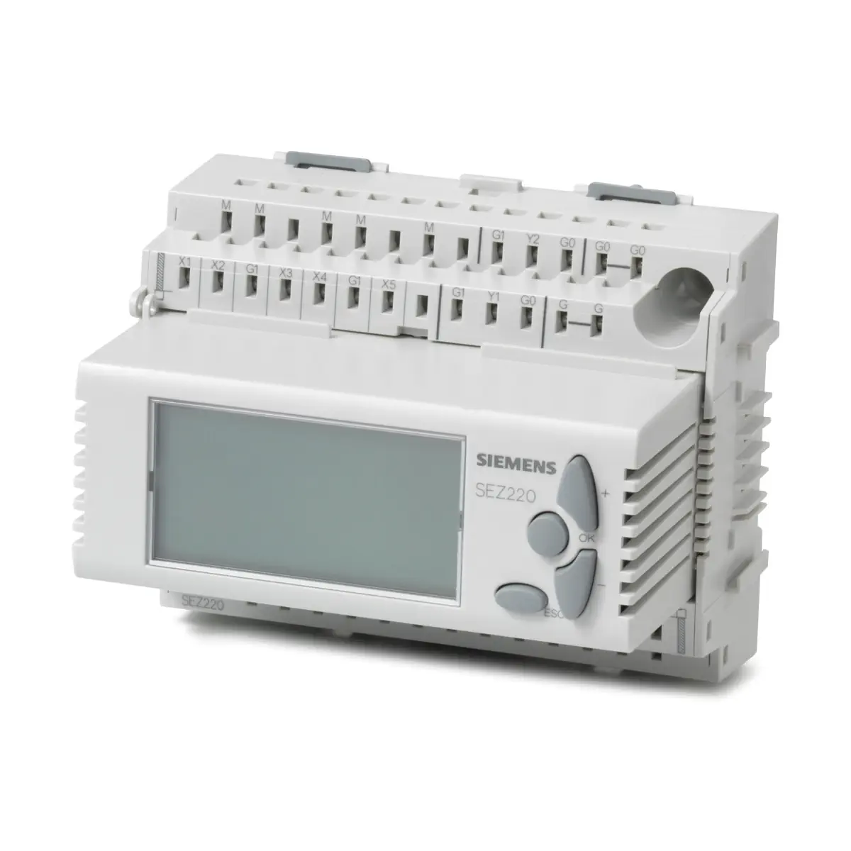 SEZ220 to przekształtnik sygnałów z rodziny Synco™ 200, przeznaczony do instalacji ogrzewania, wentylacji i klimatyzacji (HVAC). Umożliwia obróbkę do 5 uniwersalnych sygnałów wejściowych (aktywne 0...10 V DC lub bierne rezystancyjne) oraz generowanie 2 sygnałów wyjściowych 0...10 V DC. Zapewnia m.in. selekcję minimum/maksimum, uśrednianie, obliczanie entalpii, różnicy entalpii, wilgotności bezwzględnej i punktu rosy, a także podwajanie sygnałów i konwersję sygnału biernego na dwa aktywne. Konfiguracja odbywa się z poziomu menu na wbudowanym wyświetlaczu lub poprzez interfejs komunikacyjny OCI700.1.