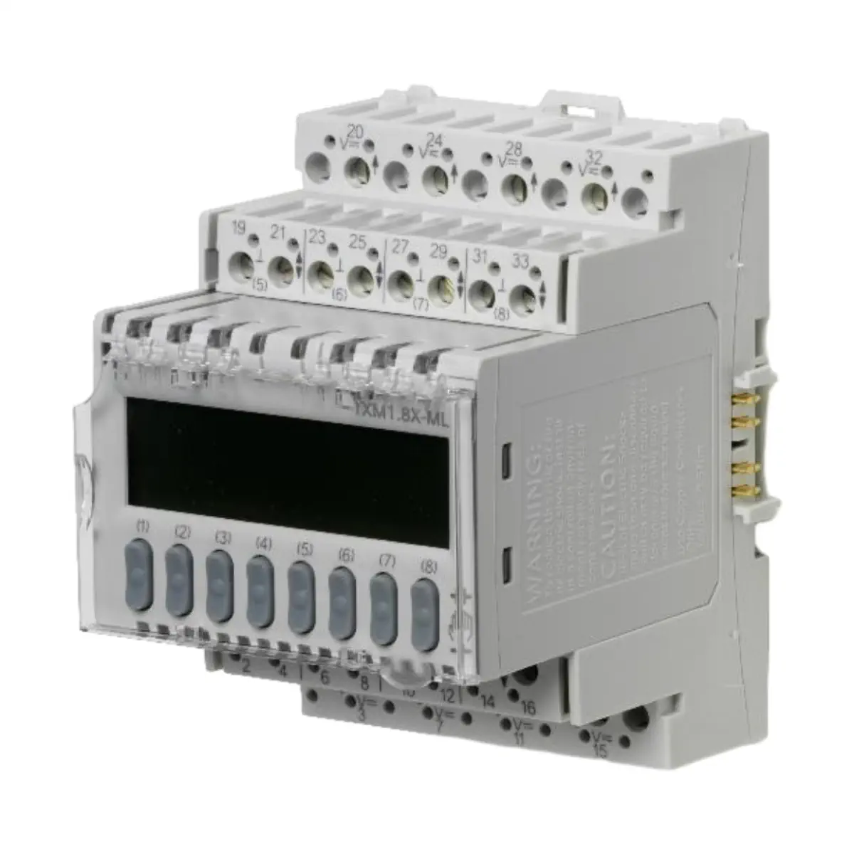 TXM1.8X-ML to moduł TX-I/O™ super uniwersalny firmy Siemens z 8 uniwersalnymi punktami I/O, które można indywidualnie konfigurować jako wejścia dwustanowe (z podtrzymaniem, impulsowe, zliczające), wejścia analogowe (m.in. 0…10 V, 0/4…20 mA, czujniki rezystancyjne i temperatury) oraz wyjścia analogowe (0…10 V, a dla wyjść 5…8 także 4…20 mA). Wersja -ML posiada wyświetlacz LCD oraz przyciski lokalnego sterowania (forsowania) z sygnalizacją trybu (LO/ID zgodnie z ISO 16484-2), co ułatwia uruchomienie i diagnostykę bezpośrednio na module.