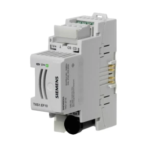 TXS1.EF10 to moduł podłączenia magistrali międzymodułowej systemu Siemens TX‑I/O™. Służy do transmisji sygnału magistrali oraz przesyłu zasilania DC 24 V (CS) do modułów TX‑I/O i ich urządzeń peryferyjnych. Dodatkowo umożliwia wprowadzenie i dystrybucję zasilania dla peryferiów w zakresie AC/DC 12…24 V (V~) poprzez magistralę międzymodułową (zabezpieczone bezpiecznikiem T 10 A).