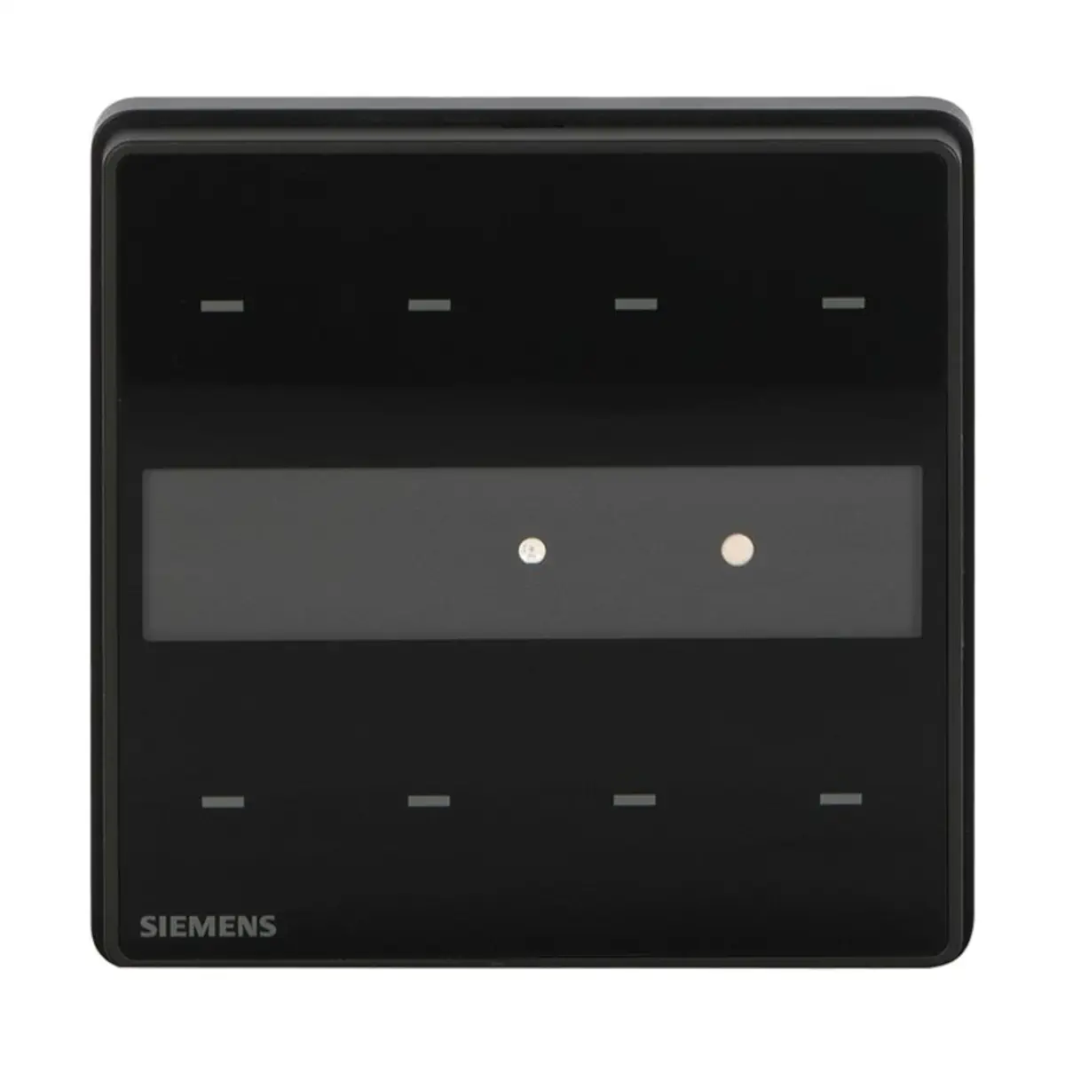 Siemens UP 203/23 z serii Gamma arina to czarny, czteropolowy czujnik dotykowy KNX do sterowania oświetleniem, roletami, scenami oraz wysyłaniem wartości w automatyce budynkowej. Oferuje 4 pionowe pary pól dotykowych (łącznie 8 pól) z diodą statusu dla każdego oraz diodą orientacyjną, a wbudowany brzęczyk potwierdza dotyk. Ma wymienną wkładkę opisową, montaż na puszce 86×86 mm z dołączoną ramką DELTA® arina i zasilanie z magistrali KNX.