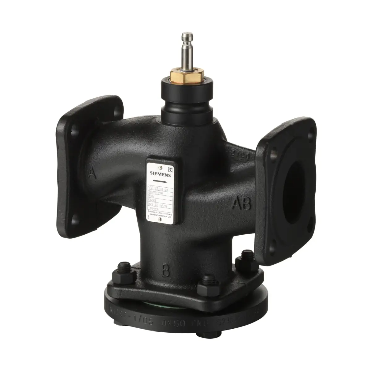 Siemens VVF22.50-40 to kołnierzowy zawór przelotowy 2‑drogowy z serii ACVATIX™, przeznaczony do regulacji lub odcinania przepływu w zamkniętych obiegach HVAC. Wersja DN50 / PN6 oferuje kvs 40 m³/h, skok 20 mm oraz minimalny przeciek 0–0,02% kvs. Pracuje z wodą grzewczą i lodową w zakresie -10…130°C. Żeliwny korpus EN‑GJL‑250 współpracuje z siłownikami SAX.., SKD.. i SKB...