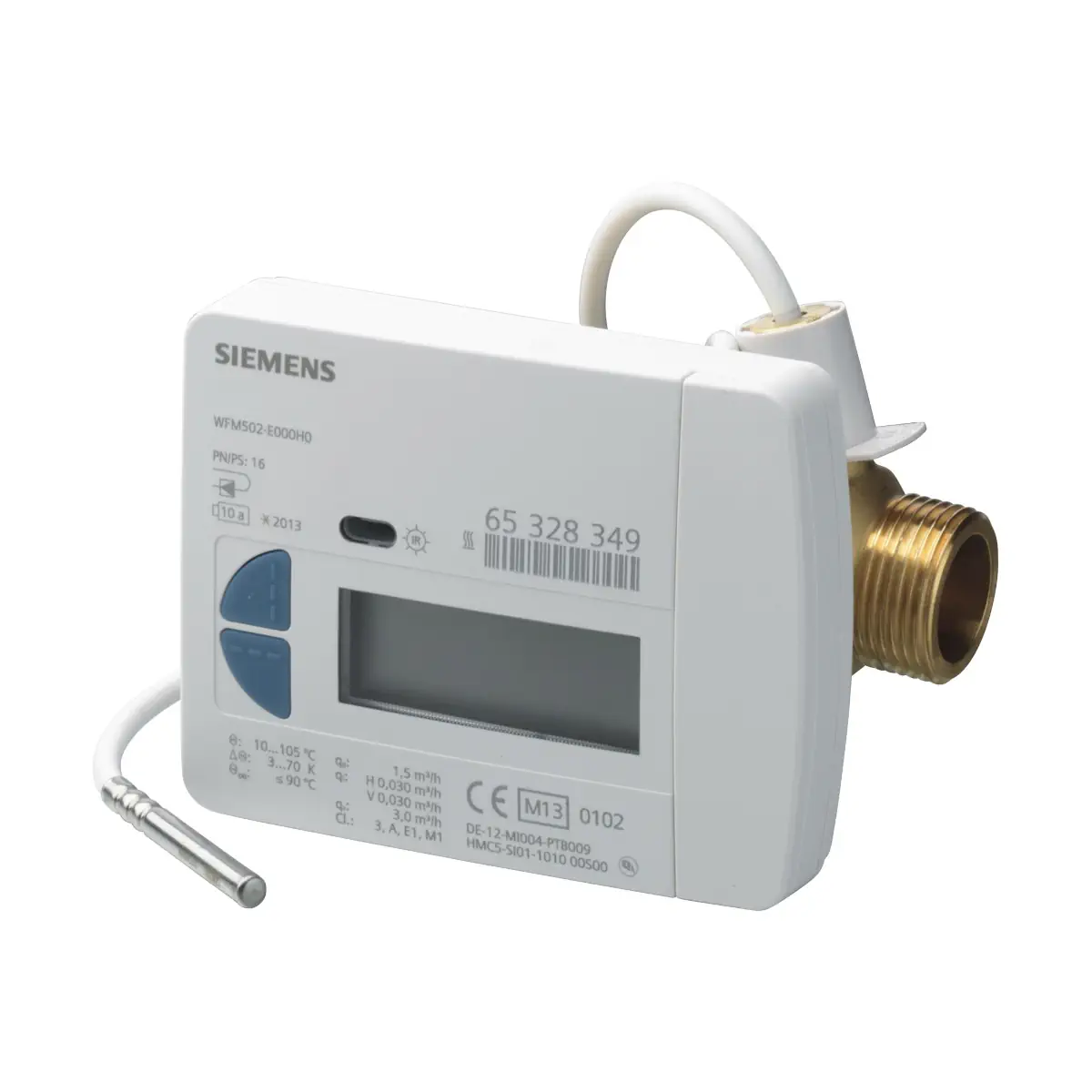 WFM501-E000H4 to kompaktowy, elektroniczny (zasilany bateryjnie) licznik energii cieplnej Siemens z jednostrumieniowym wirnikowym przetwornikiem przepływu, przeznaczony do dokładnego opomiarowania zużycia ciepła w autonomicznych instalacjach ogrzewania. Wersja WFM501 jest przystosowana do montażu na powrocie. Licznik oblicza energię na podstawie wielkości przepływu i różnicy temperatury (zasilenie/powrót), a dane mogą być odczytywane lokalnie przez interfejs optyczny IrDA lub zdalnie po doposażeniu w moduł komunikacyjny.